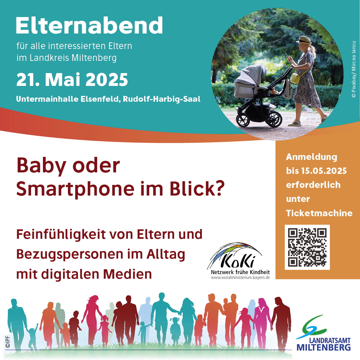 Mit dem kostenfreien Vortrag „Baby oder Smartphone im Blick – Feinfühligkeit von Eltern und Bezugspersonen im Alltag mit digitalen Medien“ unterstützen Koordinierende Kinderschutzstelle und pädagogische Kita-Fachberatung Eltern aus dem Landkreis Miltenberg am Mittwoch, 21. Mai, von 17 bis 19 Uhr im Rudolf-Harbig-Saal der Untermainhalle Elsenfeld beim Umgang mit digitalen Medien. Die Veranstaltung wendet sich an Eltern, die Kinder im Alter von bis zu sechs Jahren haben.